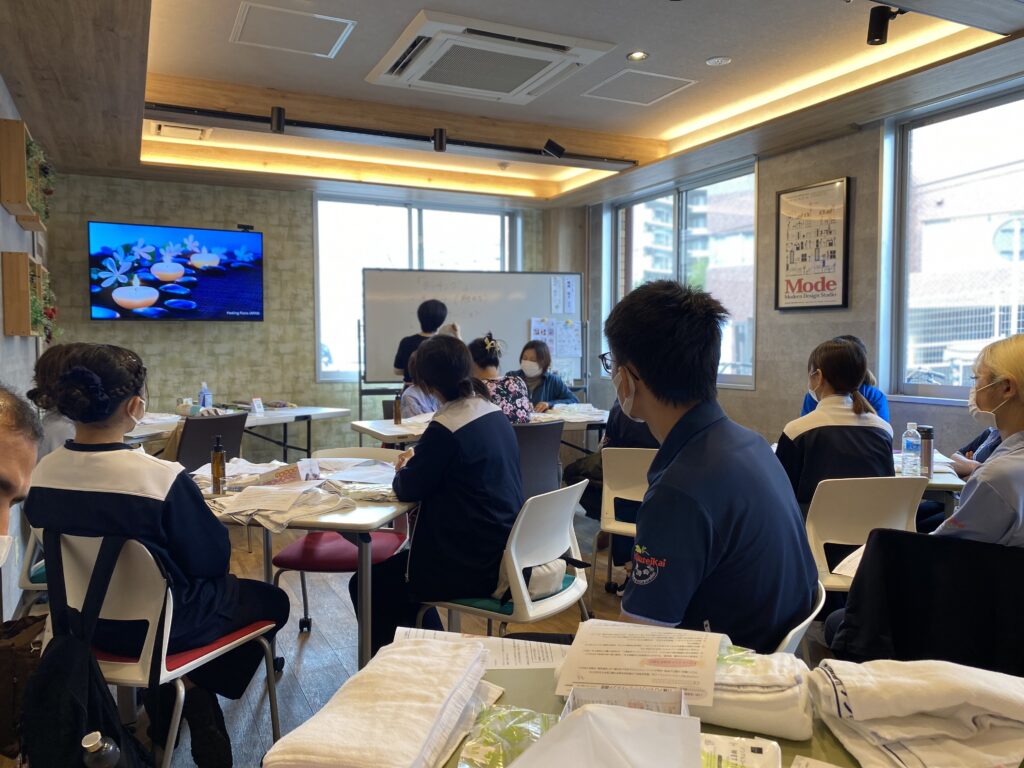 アロマクラフト教室では「介護アロマハンドトリートメント」を勉強いたしました。