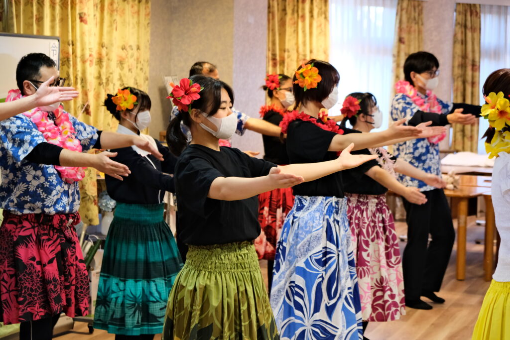 2026.02.17 職員フラダンス😁認知デイサービス!涙の恒例交流会🌹 「トライエブリシング」「見上げてごらん夜の星を」2曲は新入職員の皆さんで完成させました。 次回の4月は12名の新入職員の皆さんに先輩として、披露いたします!